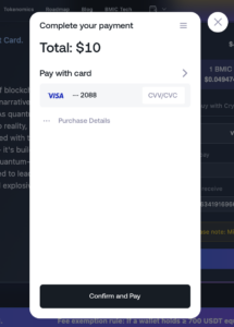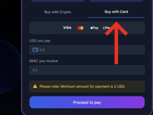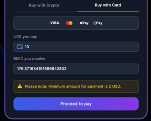 If you prefer to purchase BMIC using a debit or credit card, you can do so directly through the official presale platform. The process is simple and secure, and your BMIC allocation will still be linked to your connected ERC-20 wallet for claiming at TGE.