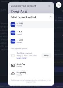 Choose the “Pay with Card” option instead of ETH, USDT, USDC, or other cryptocurrencies.